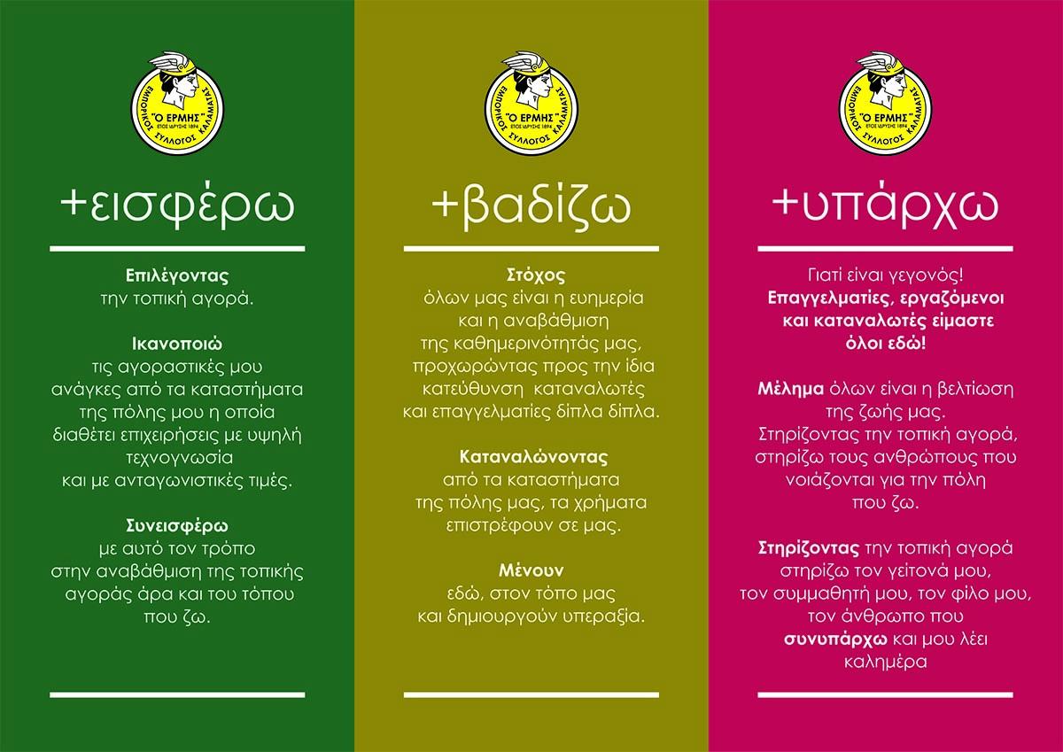 Το τρίπτυχο της δράσης προβάλει τα οφέλη της στήριξης των τοπικών επιχειρήσεων της πόλης μας και προτρέπει τους καταναλωτές να προτιμήσουν τα τοπικά καταστήματα.