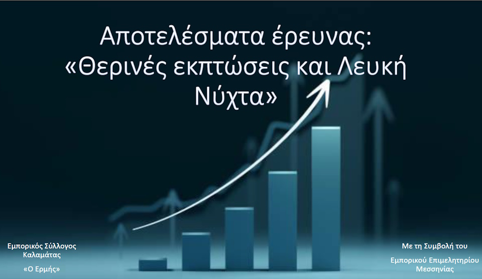 Ο Εμπορικός Σύλλογος Καλαμάτας διενήργησε έρευνα στα μέλη του, με την συμβολή του Επιμελητηρίου Μεσσηνίας, με σκοπό την αποτίμηση της αγοραστικής κίνησης στα καταστήματα αλλά και την κίνηση στην πόλη της Καλαμάτας για την περίοδο των θερινών εκπτώσεων και της Λευκής Νύχτας 2024.